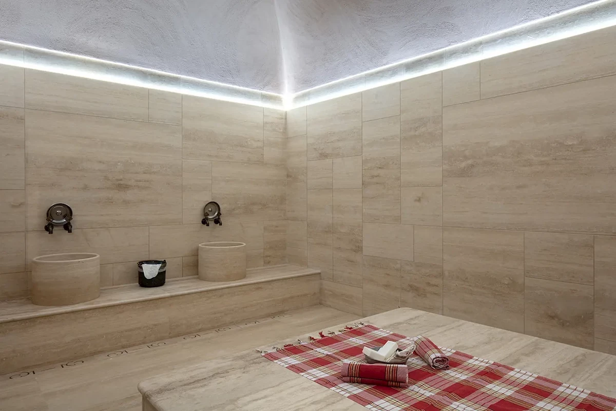 - bezpłatnie: kryty basen, sauna, łaźnia parowa, siłownia, joga, pilates