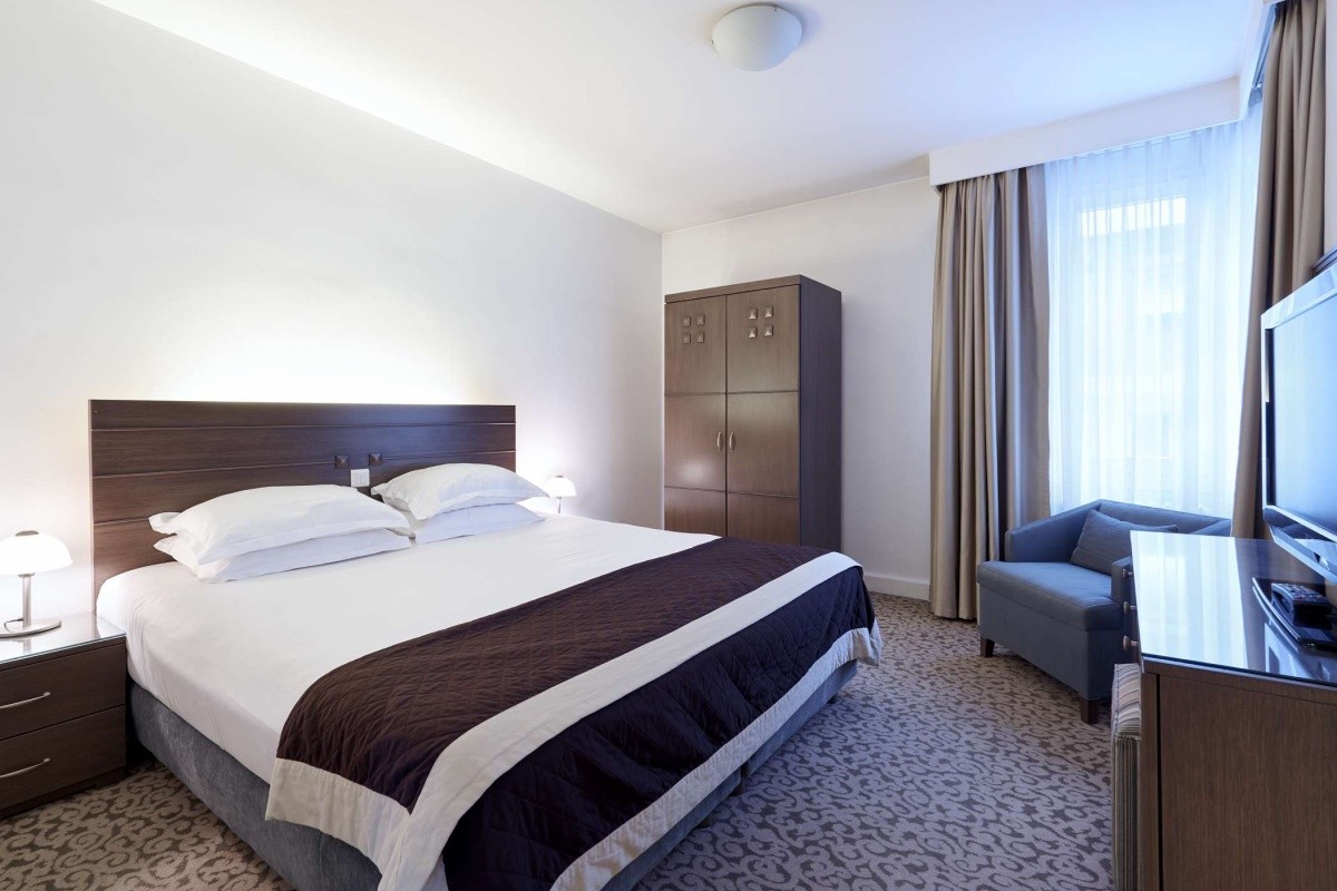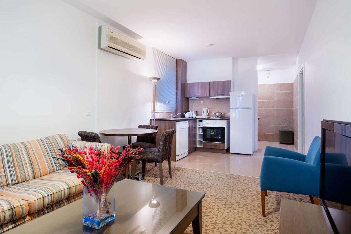 Ako sa ubytovať: Izby majú klimatizáciu a kúrenie. Balkón s výhľadom na more vo väčšine ubytovacích jednotiek ponúka ideálne miesto na oddych so svojou krásnou atmosférou. Izby s kobercom majú posteľ king a rozkladaciu pohovku. Prístelky je možné vyžiadať. K dispozícii je aj trezor, minibar a pracovný stôl. K dispozícii je plne vybavená kuchynka s chladničkou, minichladničkou, mikrovlnnou rúrou, čajníkom/kávovarom, umývačkou riadu a rúrou. K dispozícii je tiež práčka, žehliaca súprava a lis na nohavice. Telefón, TV a WiFi (zdarma) ponúkajú najlepší dovolenkový komfort. K vybaveniu izieb patria papuče. V kúpeľni so sprchovacím kútom a vaňou nájdete sušič vlasov a župany. Kozmetické výrobky zaisťujú extra pohodlie v kúpeľniach. Rezervovať je možné aj bezbariérové izby s bezbariérovými kúpeľňami. Dom ponúka rodinné a nefajčiarske izby.