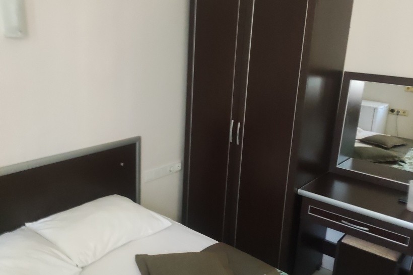 Pokoje jsou maličké – dva lidé se nevejdou na podlahu mezi postelí a skříní, ale existuje způsob, jak ubytovat jednu osobu na posteli nebo v koupelně. Postel je velmi pohodlná. Ručníky jsou původní, trochu krajkové – což znamená, že jsou potrhané a roztřepené.