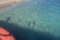 U pláže, čisto, jen vstup do moře přes kameny, jen jedny schůdky,