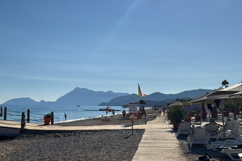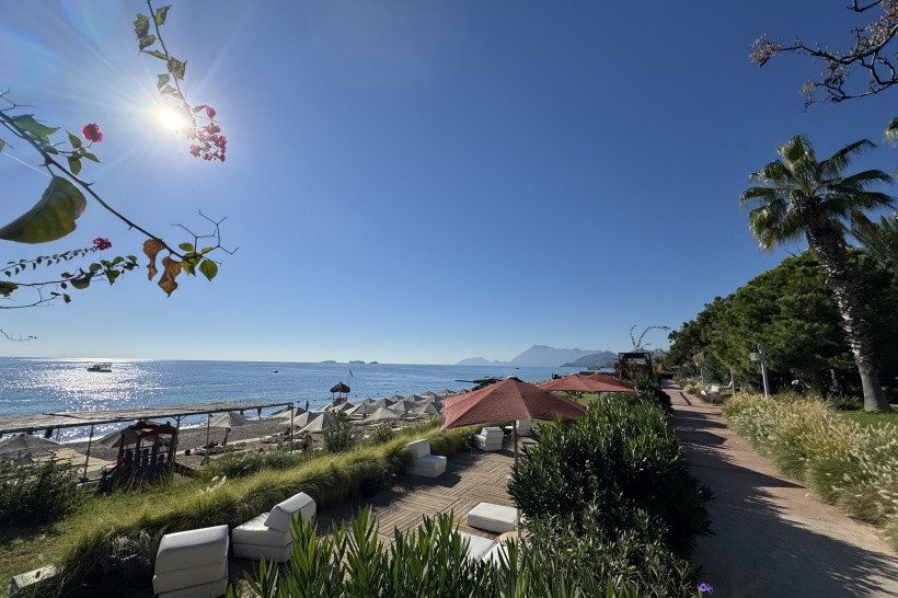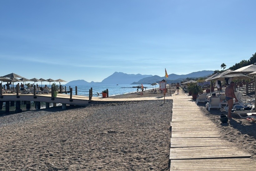 Piesočnatá pláž s kamienkami sa nachádza v tesnej blízkosti hotela. Lehátka a slnečníky pri bazéne je možné využívať zadarmo. Na pláži sa nachádzajú 3 bary, hostia môžu využiť možnosť potápania a vodných športov (za poplatok).