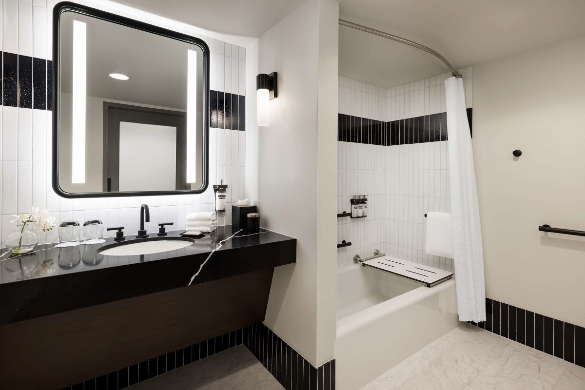 - 31-35 qm, Doppel, Doppelbetten (1 Kingsize oder 2 Queensize), Dusche, Badewanne, bodengleiche Dusche, WC, Haartrockner, Klimaanlage, Mini-Kühlschrank (kostenpflichtig), Safe, Bügelbrett, Bügeleisen, TV, Kaffee/Tee, Zutritt zur Club-Lounge, hochwertige Badartikel, bodentiefe Fenster, Verdunklungs-Vorhänge, bei Ankunft im Zimmer Wasser