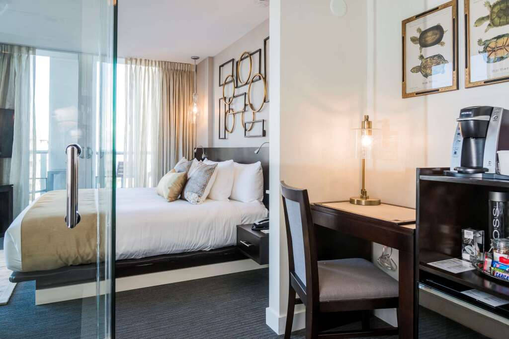 - Vybrané pokoje s výhledem na město a Collins Avenue, nebo částečným výhledem na oceán