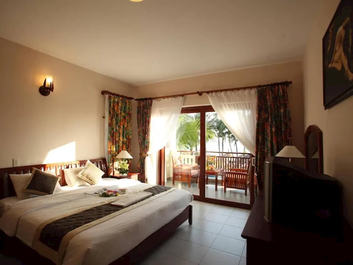 Dla max. 3 osób, Kanały telewizji: Angielski, Telefon w pokoju, prysznic, Powierzchnia pokoju: ok. 28 - 30 m2, Rodzaj podłogi: płytki, Sprzątanie codziennie, 1 sypialnia, Maksymalna liczba osób dorosłych: 2, Maksymalna liczba dzieci: 2, Widok na ogród, Liczba łazienek: 1, Liczba toalet: 1, Zestaw do parzenia kawy i herbaty, Klimatyzacja: Klimatyzacja centralna, Działa w godzinach: 24hPlaża