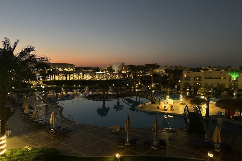 Na úrovni, na kterou jsem byl zvyklý v Egyptě za starých časů, proto jsem tam byl už po osmé. Bohužel vloni jsme byli velmi zklamaní, když jsme se ubytovali v jiném hotelu (Pensee Royal Garden), kde bylo vše naprosto naopak a způsobilo totální frustraci. V tomto případě neexistoval žádný prvek, proti kterému by se dalo něco namítat. Výkonná klimatizace na recepci, personál speciálně osvětlující stůl přídavnými světly, když viděl, že u něj hrajeme v kostky, nikde žádné fronty, dostatek místa k večernímu posezení ať už u baru u bazénu nebo poblíž recepce a nakonec , správná velikost nádobí v místě, kde se podávaly nápoje a nápoje, díky čemuž se bar automaticky uvolnil. Obsluha sama připravovala nápoje dle očekávání, včetně alkoholu, pokud o něj někdo požádal, a všude byly samoobslužné automaty, které rozvážely sycené nápoje a vodu.