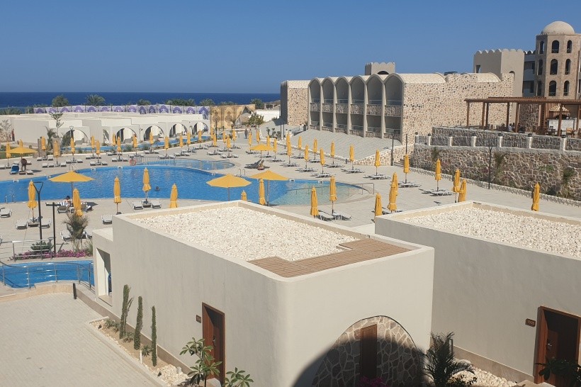Nově oostavená část staršího resortu. Vše ok. Výhled na bazén a moře...