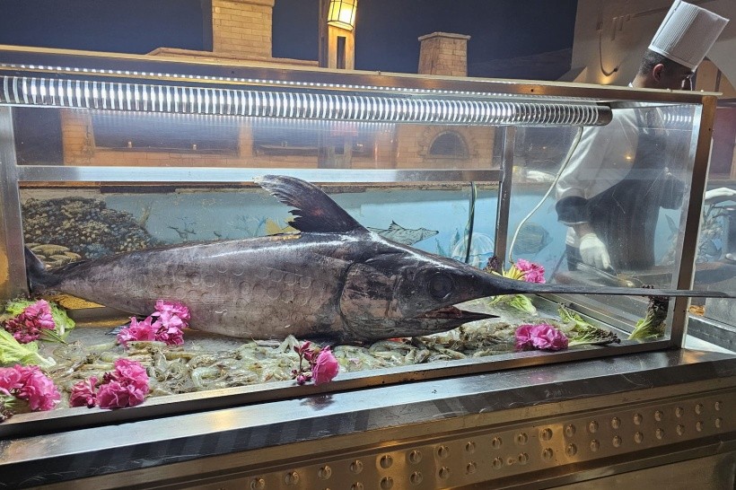 Výběr stravy byl v hlavní jídelně široký i když se jídla opakovala. Masa převážně hovězí, kuřecí a ryby. Polévky, zeleninové saláty, sýry, uzeniny a ovoce. Široká nabídka zákusků, zmrzliny. Škoda jen, že už třetí den mě postihla faraonova pomsta (do té doby jsem se nikde jinde nestravoval, než v hotelu - prášky od hotelového doktora 30 USD) a přestal jsem tedy v hotelu konzumovat vše, co musel personál omýt, žádná zmrzlina, žádná zelenina, jen vařená atd. V restauraci na pláži takový výběr nebyl, jídla se opakovala a byla převážně smažená, nebo sendviče. K jídlu se podává voda, pivo a víno. Víno personál přelévá z krabice do láhve a pak ho v láhvi roznáší. Nejsem odborník na hotelnictví, nevím tedy, jestli to je teď v pětihvězdičkových hotelích standard.