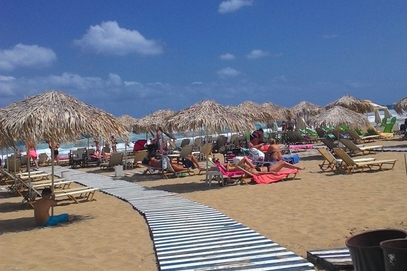 Pláž je přeplněná, svah je pozvolný, nepotřebujete speciální obuv, ale poblíž jsou i pláže, kde by se obuv mohla hodit ;) Bylo tam ale spousta lehátek zdarma, ale můžete si vzít vlastní deku a ležet na ní