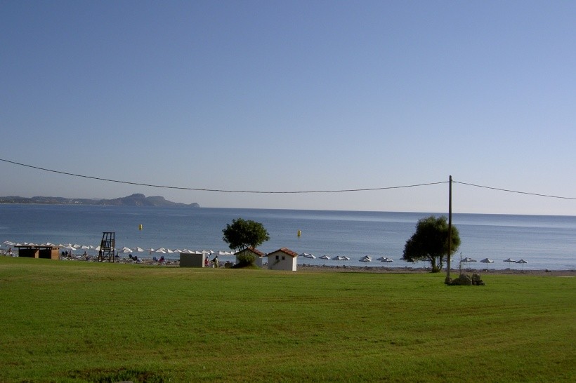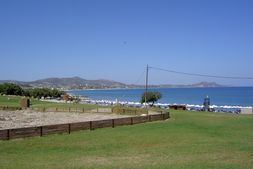 Oblázková a kamenitá pláž, vzdálená asi 500 metrů od hotelu, je tvořena oblázky, takže se po ní snadno chodí. Pláž je čistá, výhledy jsou krásné a moře je teplé (k dispozici je spousta plážových aktivit ke koupi). Vyplatí se koupit si boty do vody (usnadňují vstup do moře).