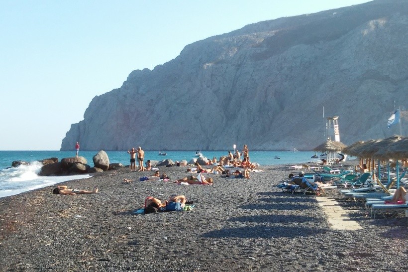 Nádherná černá pláž. V Kamari písem nečekejte, jsou tam pouze oblázky. Na písečnou pláž musíte do Perissy. Moře bylo nádherně čisté a nad hlavou mi přistávali letadla, nádherný pohled.