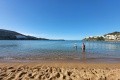 tmavší písek, mělko, slunečníky za poplatek 15Eur, ale možno půjčit si auto a dojet kamkoliv. Všude blízko.