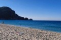 Blízko hotela, málo lehátiek,drobné kamienky, more teplé