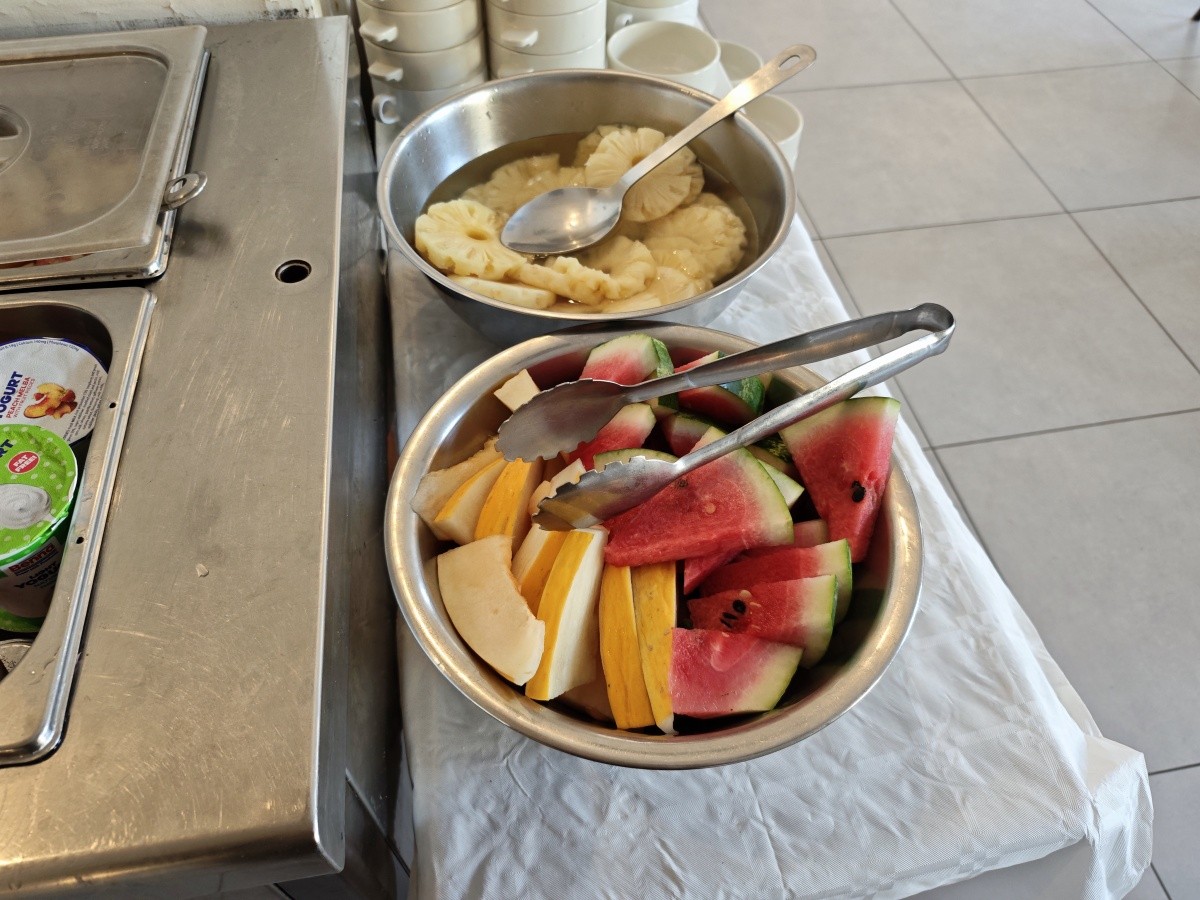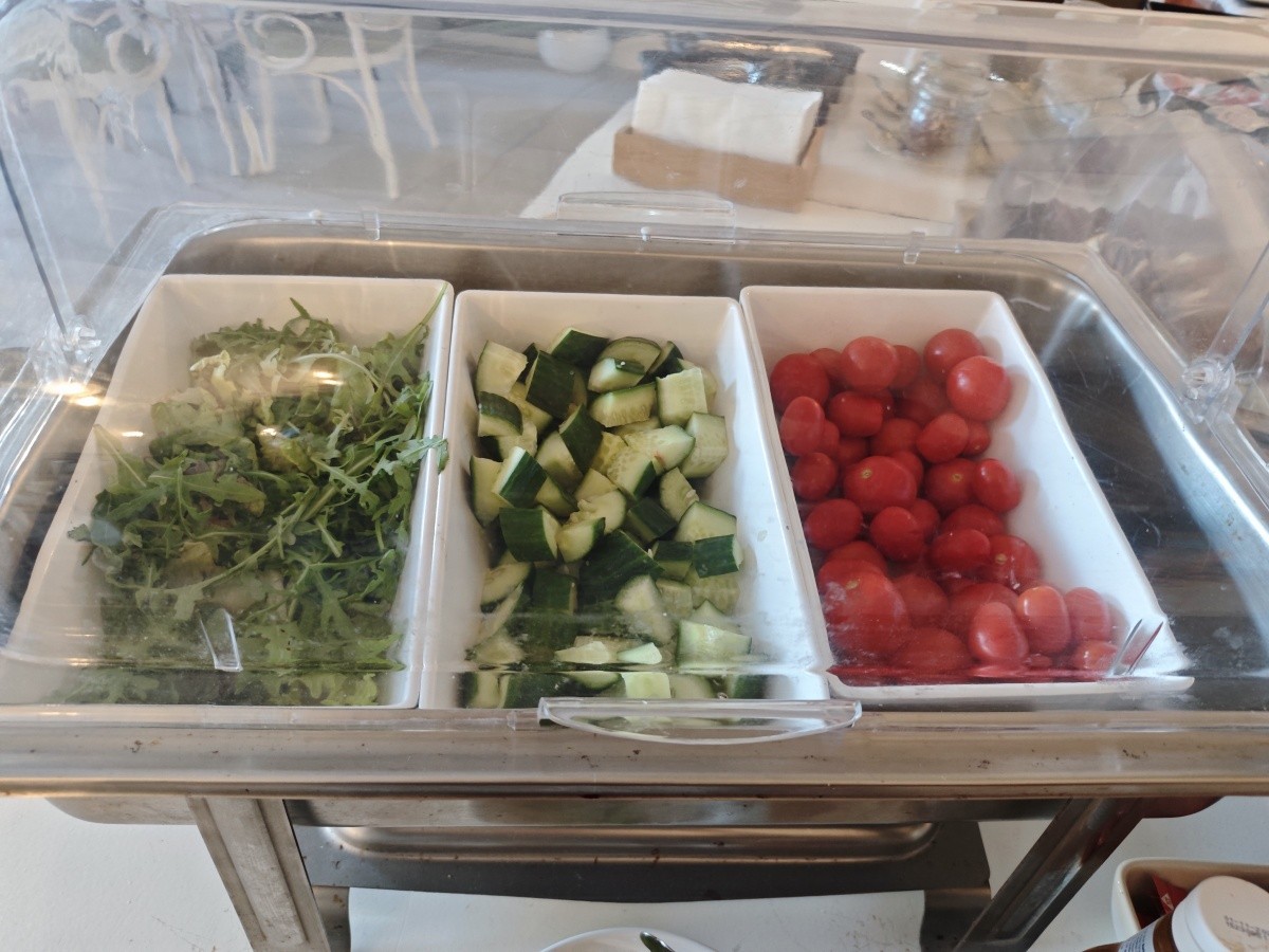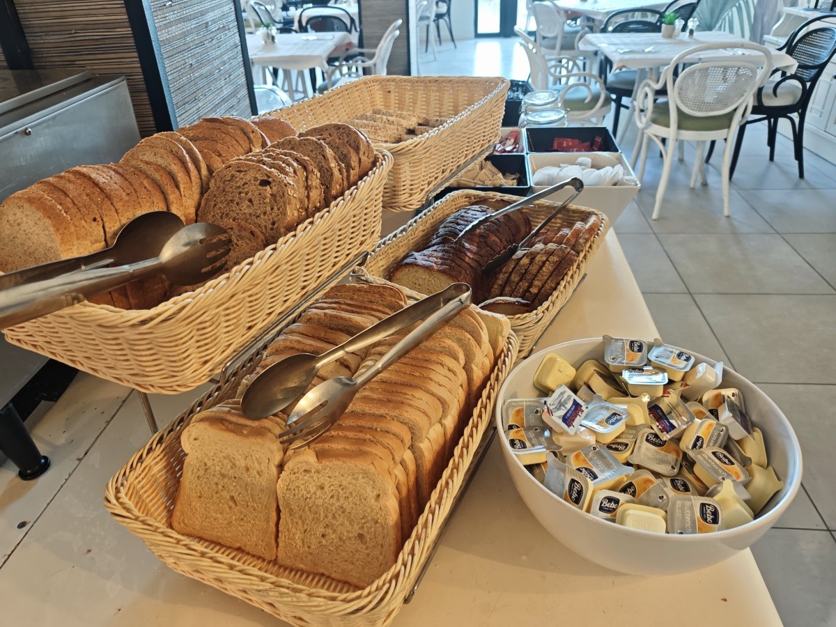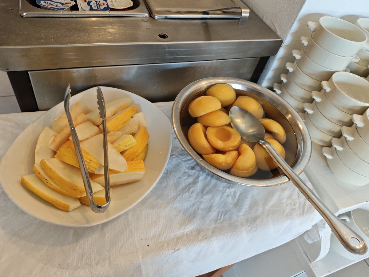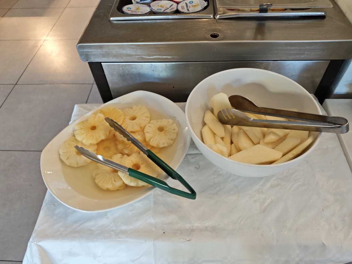 Využili jsme možnosti snídaní. Snídaně byly velmi pestré, každý si měl najít něco pro sebe. K dispozici byly různé druhy pečiva, croissanty, vafle, ovesné vločky, čokoláda a kukuřičné lupínky. Byl velký výběr ovoce a zeleniny, ovocné saláty, jogurty, džemy, med a džusy. Každý den si můžete vytvořit něco jiného. Samozřejmě nechybělo mnoho vajec ve všech formách a standardně lahodné maso. Večeře byly podávány výhradně s vynikajícími chutěmi. Jídlo bylo na vysoké úrovni.
