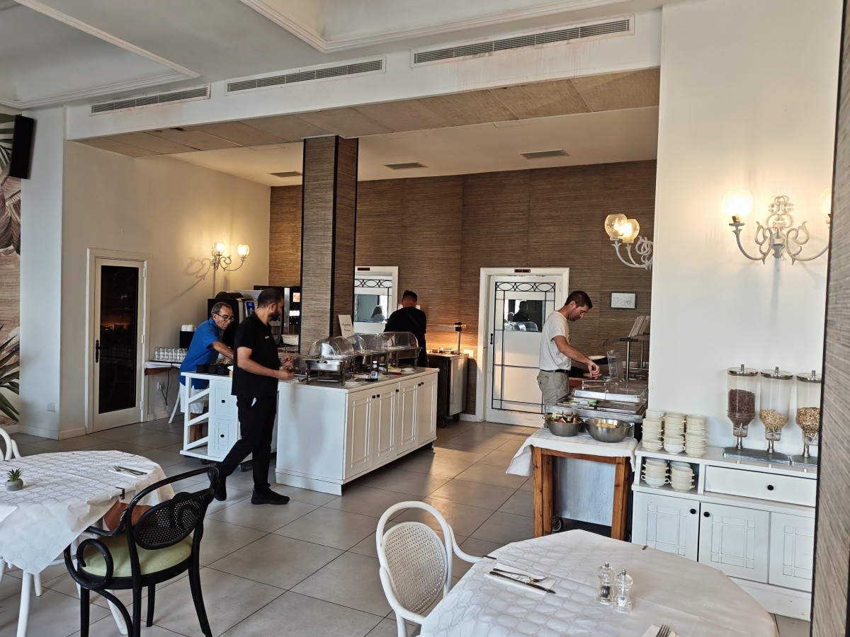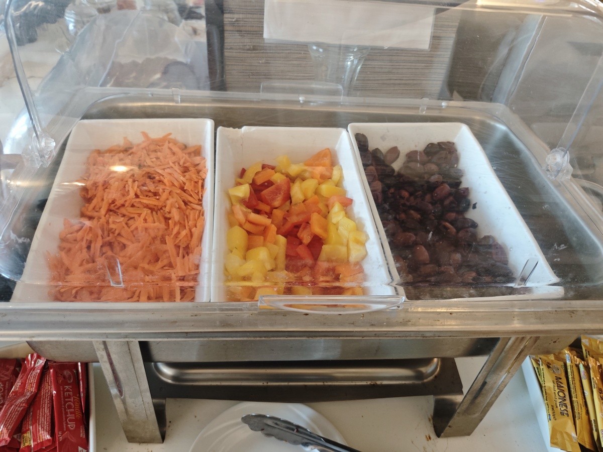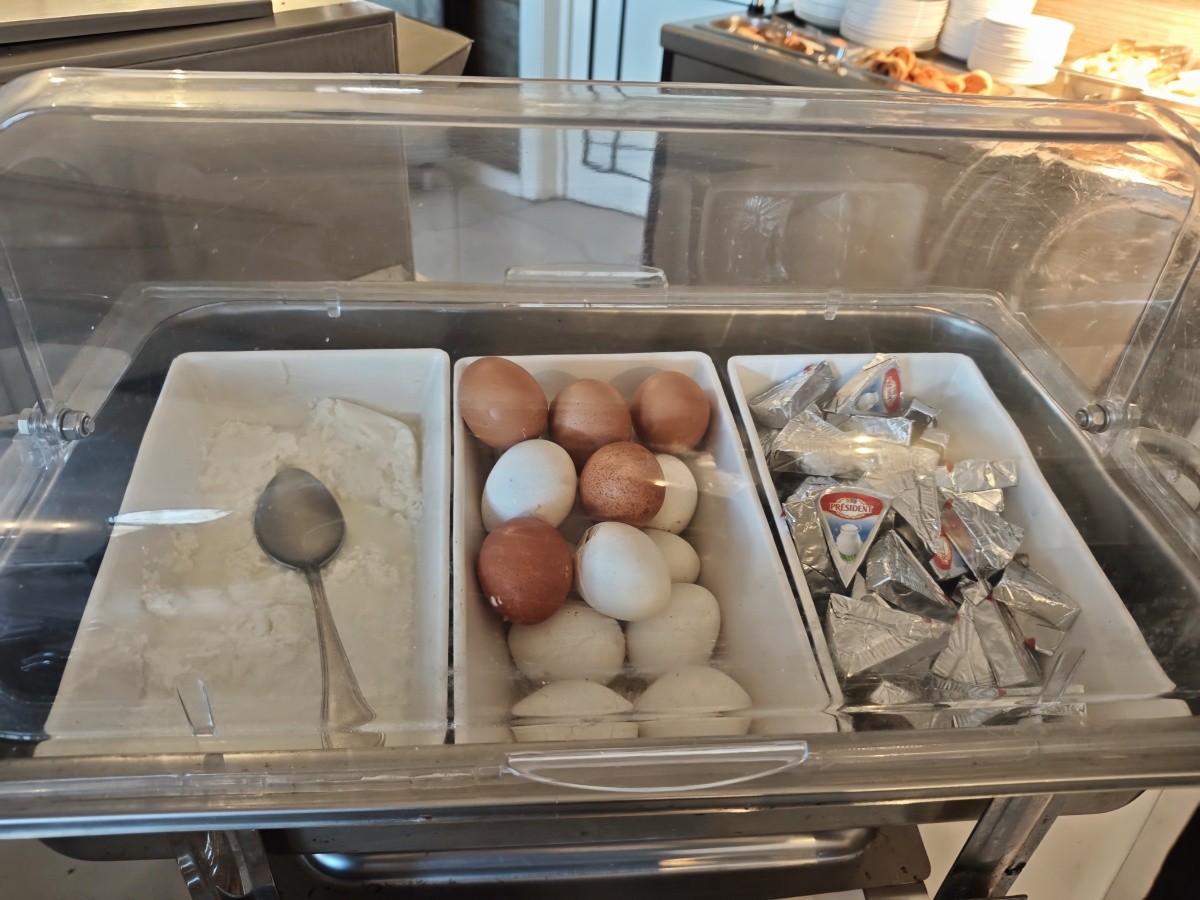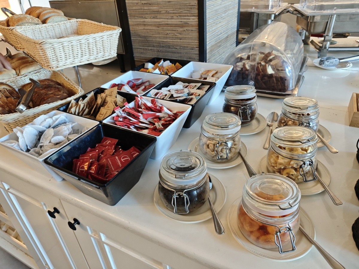 Využili jsme možnosti snídaní. Snídaně byly velmi pestré, každý si měl najít něco pro sebe. K dispozici byly různé druhy pečiva, croissanty, vafle, ovesné vločky, čokoláda a kukuřičné lupínky. Byl velký výběr ovoce a zeleniny, ovocné saláty, jogurty, džemy, med a džusy. Každý den si můžete vytvořit něco jiného. Samozřejmě nechybělo mnoho vajec ve všech formách a standardně lahodné maso. Večeře byly podávány výhradně s vynikajícími chutěmi. Jídlo bylo na vysoké úrovni.