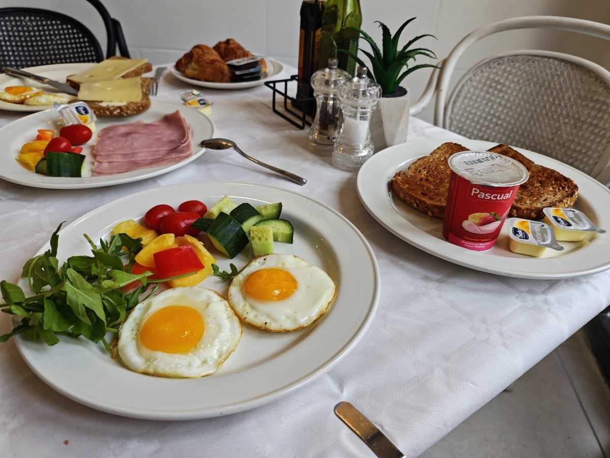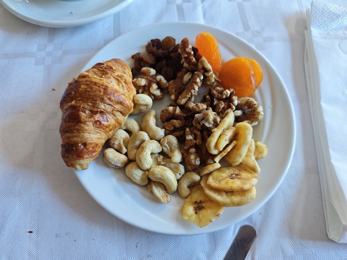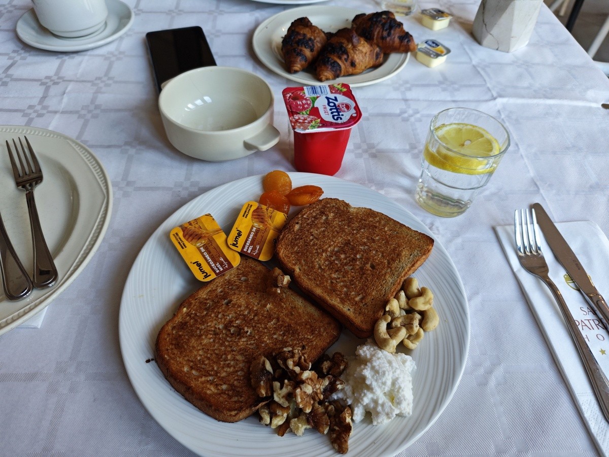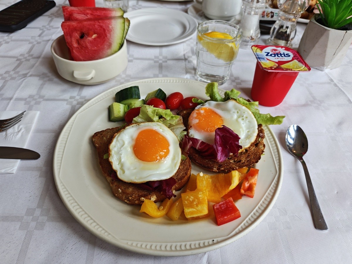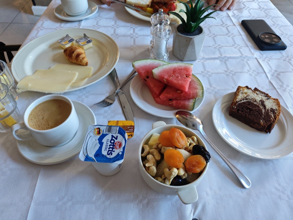 Využili jsme možnosti snídaní. Snídaně byly velmi pestré, každý si měl najít něco pro sebe. K dispozici byly různé druhy pečiva, croissanty, vafle, ovesné vločky, čokoláda a kukuřičné lupínky. Byl velký výběr ovoce a zeleniny, ovocné saláty, jogurty, džemy, med a džusy. Každý den si můžete vytvořit něco jiného. Samozřejmě nechybělo mnoho vajec ve všech formách a standardně lahodné maso. Večeře byly podávány výhradně s vynikajícími chutěmi. Jídlo bylo na vysoké úrovni.